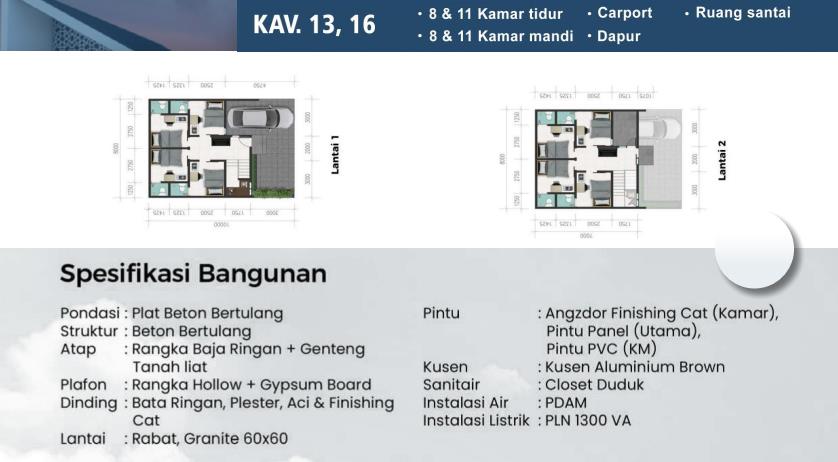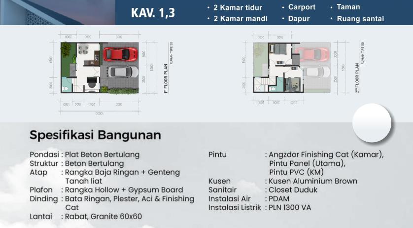 - Atap : Rangka Baja + Ringan + Genteng Tanah Liat